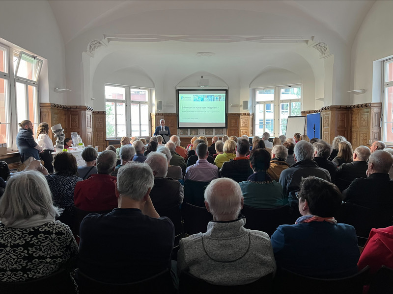 Großes Interesse an unserem gestrigen Infoabend: Rund 120 Besucher:innen informierten sich beim Vortrag von Prof. Dr. med. Köster über moderne Behandlungsmöglichkeiten bei Knie- und Hüftschmerzen.